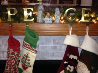 I may not find the A this year. I didn’t think about what I was dong at the time, but in the middle of my PEACE, where the A ought to be, rests a little stone carving of the Prince of Peace himself. Jesus, the center of peace.